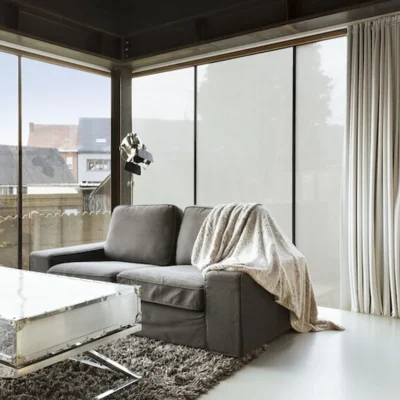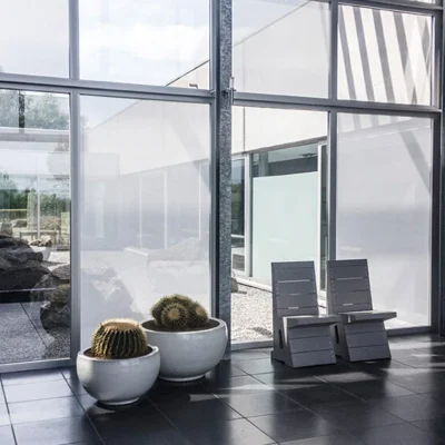 Die selbstklebende textile Fensterfolie Hafttextil SQUID®, auch Sichtschutzfolie genannt, schützt Ihre Innenräume vor neugierigen Blicken von draußen und lässt gleichzeitig Tageslicht in Ihre Räume. Egal ob Fensterflächen oder Glastüren, auch Ihre Glasflächen sind durch das Hafttextil SQUID® geschützt. Das Hafttextil hat einen ähnlichen Effekt wie eine Milchglasfolie oder ein Fenster aus Milchglas. Unabhängig von Form und Größe kann es in jedes senkrechte Fenster eingesetzt werden. Die individuell zugeschnittene, selbstklebende textile Fensterfolie eignet sich hervorragend für private Räume wie Badezimmer, Küche oder Schlafzimmer, aber auch für gewerbliche Räume wie Büros, Arztpraxen und viele mehr.