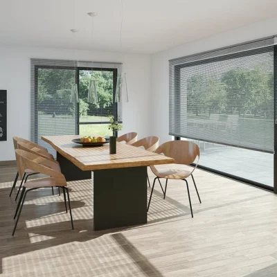 Dank der flexibel verstellbaren Lamellen lassen sich Licht und Privatsphäre jederzeit individuell regulieren – ob zur Verdunkelung, als Blendschutz oder für eine helle, freundliche Atmosphäre. Die langlebigen Lamellen aus Aluminium oder Holz sind pflegeleicht, robust und eignen sich auch für Feuchträume. Mit verschiedenen Montagearten – auf Wunsch sogar ohne Bohren – und einer großen Auswahl an Farben und Oberflächen passen sich MHZ Jalousien perfekt an jedes Raumkonzept an.