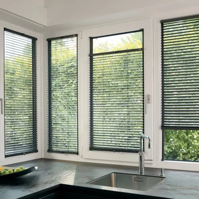 Maßgefertigte Jalousien für innen zeichnen sich durch ihre Vielseitigkeit sowie allerhand Vorteile aus. Die flexible Neigung der Lamellen ermöglicht zu jeder Zeit eine optimale Anpassung an die Lichtverhältnisse und den Wunsch nach Privatsphäre. Je nach Bedarf und Position der Lamellen kann eine Jalousie als Verdunklung, Blendschutz oder Sichtschutz eingesetzt werden. Gleichzeitig bieten Jalousien den Vorteil, dass sie sehr robust und widerstandsfähig sind. Die Lamellen aus Aluminium bzw. Holz sind zudem einfach und schnell zu reinigen und erfordern nur wenig Wartung. Dank der verschiedenen Montagearten findet sich auch für Ihr Zuhause die passende Möglichkeit. Unsere am Fensterrahmen befestigten Innenjalousien können ganz einfach auch ohne Bohren und Schrauben montiert werden. Durch ihr robustes Material können die Maßanfertigungen sowohl in Feuchträumen wie Küche oder Bad als auch im Arbeitszimmer, Schlafzimmer, Kinderzimmer oder Wohnzimmer eingesetzt werden.
